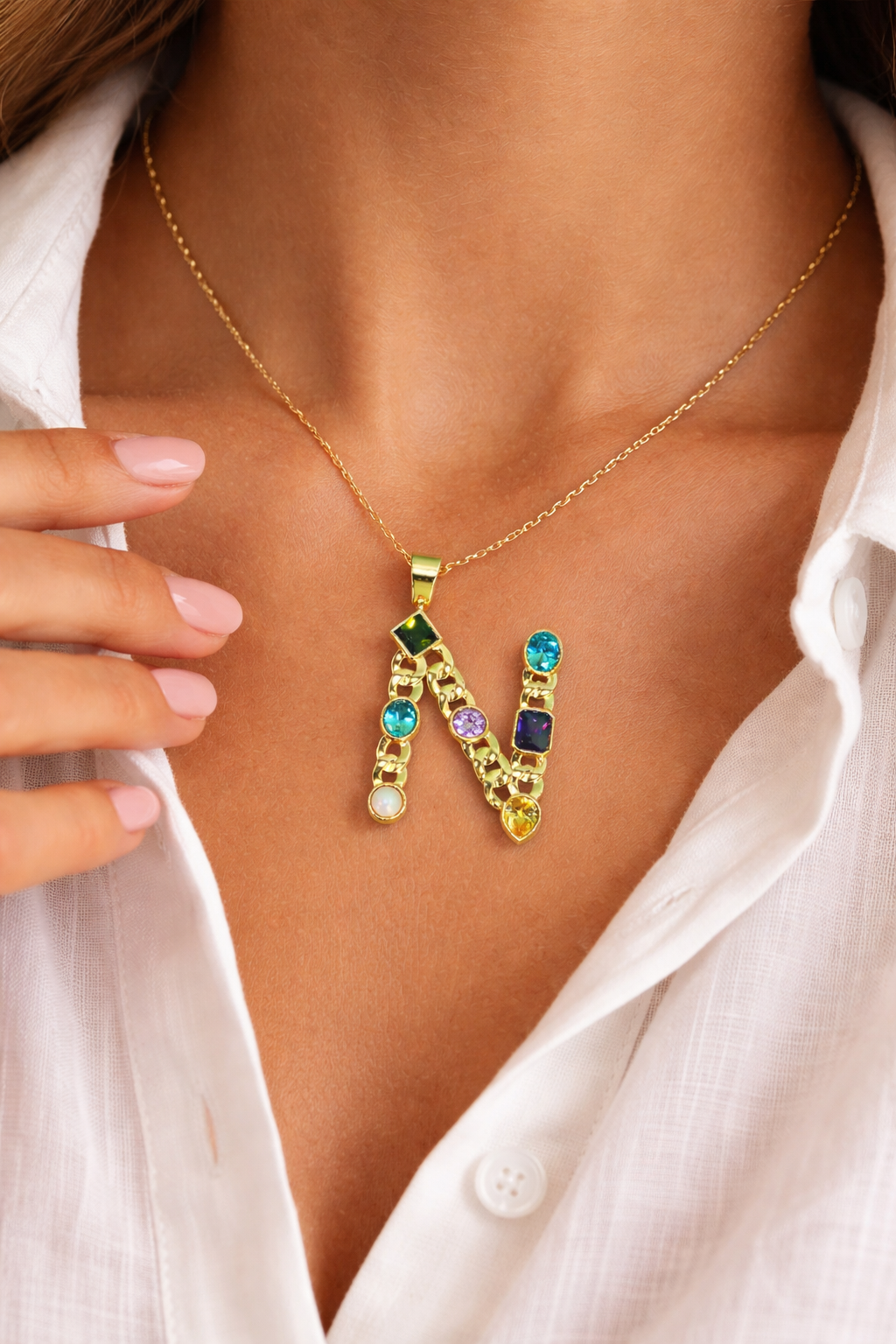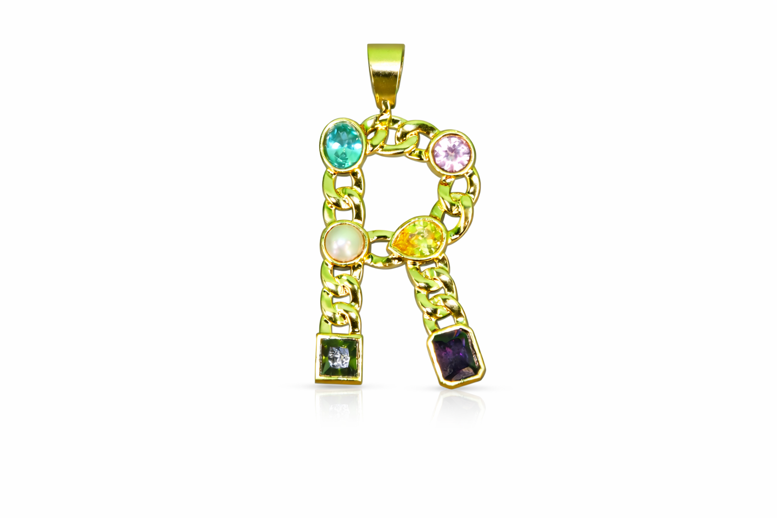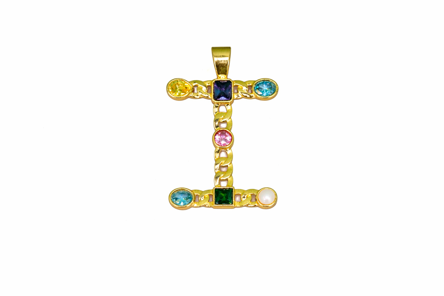 A bold expression of identity and craftsmanship. Handcrafted in India, this striking pendant features a vibrant mix of gemstones set in a rich gold-tone finish. The linked...